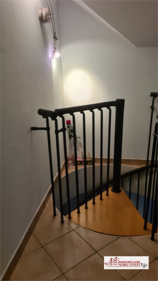 Scala a chiocciola che conduce al piano superiore mansardato dove troviamo camera matrimoniale con cabina armadio, due camerette un bagno e ripostiglio.