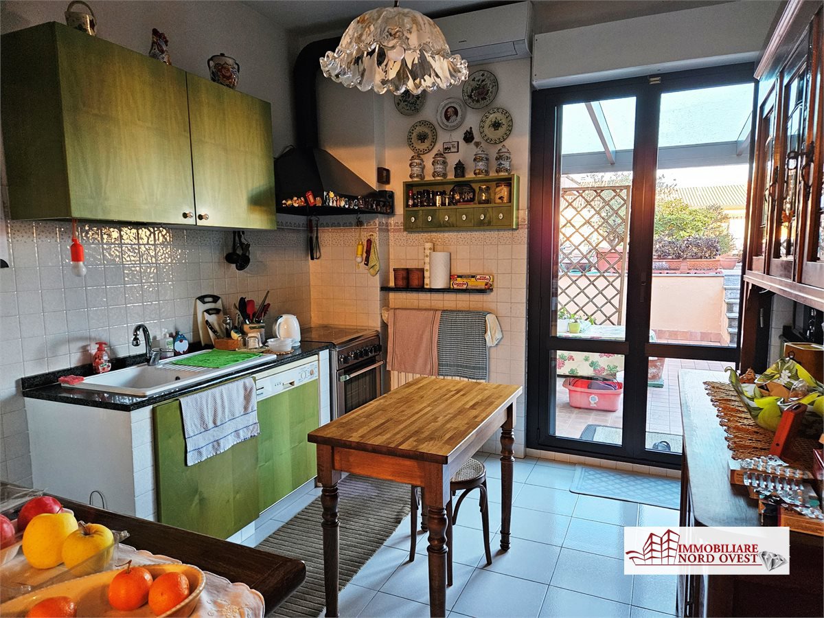 L'immobile è composto da: ampio e luminoso salone con camino, cucina abitabile con accesso diretto al terrazzo suddiviso su due livelli, due camere da letto e doppi servizi, comodo ripostiglio.